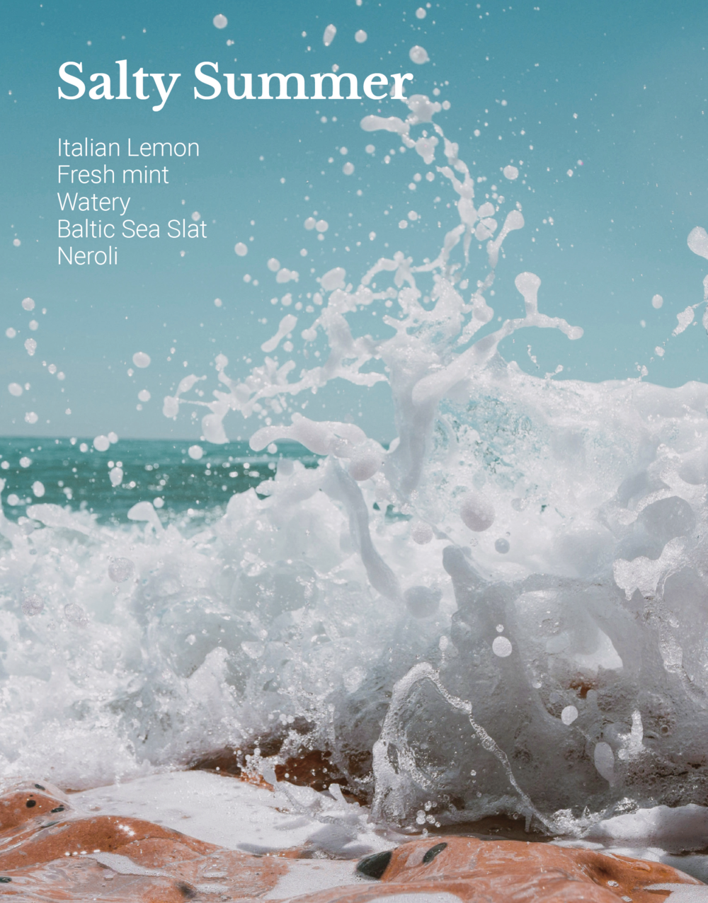 - 블렌딩 : Italian Lemon, Fresh mint, Sea, Watery, Baltic Sea Slat, Neroli, Mediterranean sea salt, Sun-kissed apricot